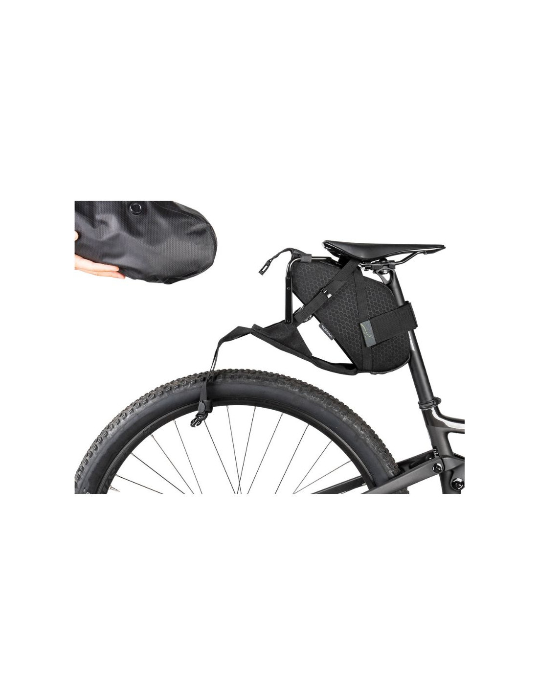 Rymlig och vattentät sadelväska för bikepacking – perfekt för dig som vill packa smart och säkert utan pakethållare. Håller utrustningen torr och kompakt.