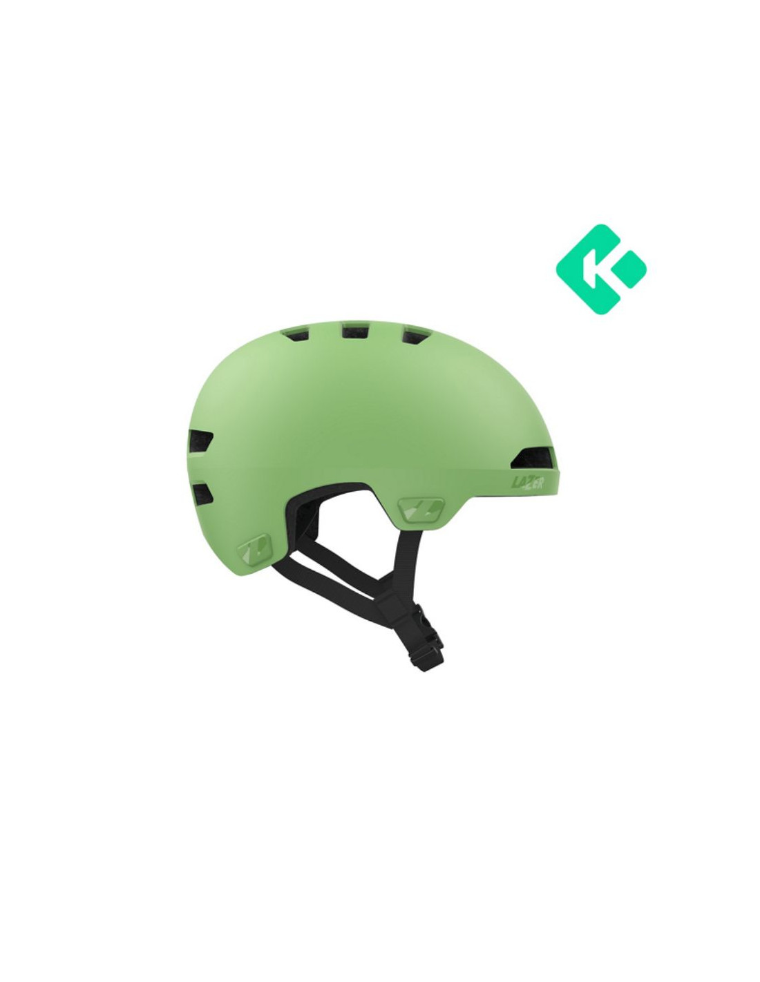 Lazer Maze Jr KinetiCore med grönt spänne – en säker, miljövänlig och modern juniorhjälm med smart passform och hög komfort för stadskörning och actionfyllda aktiviteter.